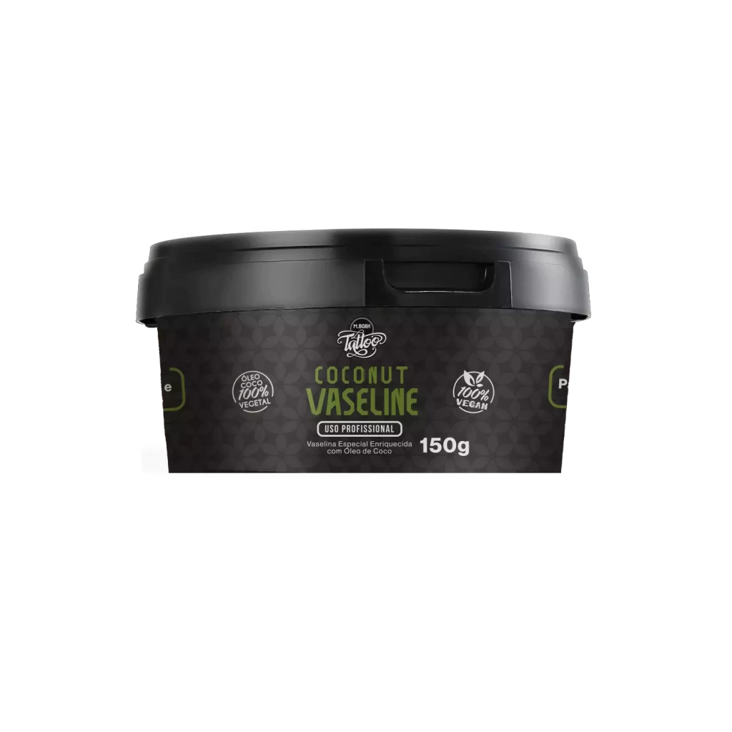 A Coconut Vaseline combina a proteção da vaselina com o poder hidratante do óleo de coco. Ideal para sessões de tatuagem, ela reduz o atrito da máquina, protege a pele e ajuda na cicatrização, mantendo a área sempre hidratada e suave.