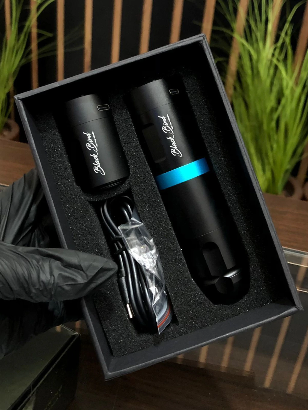 A pen Black Bird é ideal para quem busca custo-benefício com desempenho profissional. proporciona até 5 horas de trabalho contínuo, garantindo liberdade e mobilidade ao artista. Seu corpo em alumínio resistente, aliado ao design ergonômico e ao acabamento fosco, traz conforto durante sessões longas e maior durabilidade.